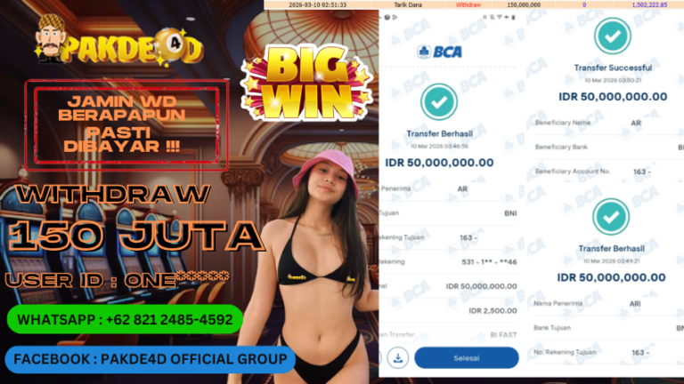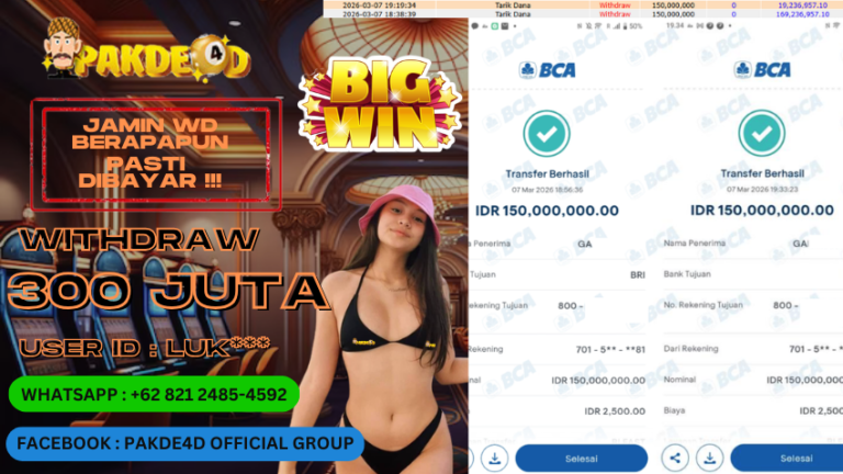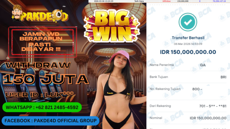 PAKDE4D JACKPOT DI PERMAINAN SLOT RP. 150.000.000,- LUNAS