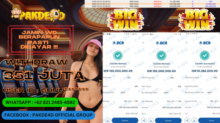 PAKDE4D JACKPOT DI PERMAINAN SLOT RP. 351.282.000,- LUNAS