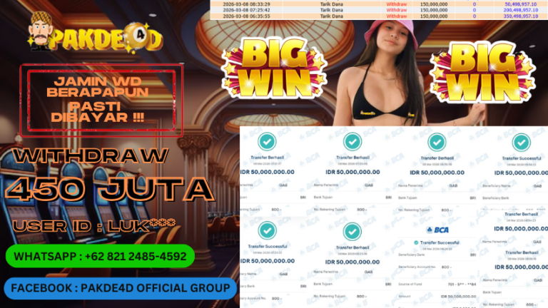 PAKDE4D JACKPOT DI PERMAINAN SLOT RP. 450.000.000,- LUNAS