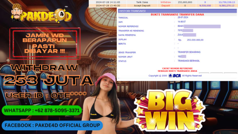 PAKDE4D JACKPOT DI PERMAINAN SLOT RP. 253.000.000,- LUNAS