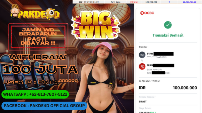 PAKDE4D JACKPOT DI PERMAINAN SLOT RP. 100.000.000,- LUNAS