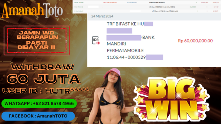 Amanahtoto – Adalah Agen judi online terpercaya dan pastinya gacor yang telah membuktikan kemenangan member lewat bukti jeckpot. Dengan bukti jeckpot setiap player dapat mengetahui bahwa situs Amanahtoto memiliki tingkat kualitas terbaik dari kemenangan di game dan dijamin aman terpercaya untuk player yang ingin mencoba merasakan kemenangan dalam permainan judi online di Indonesia. Dengan kemenangan Player di Amanahtoto Khususnya member…