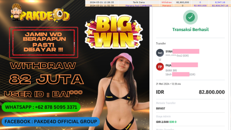 PAKDE4D JACKPOT DI PERMAINAN TOGEL PASARAN CAMBODIA POOLS RP. 82.800.000 LUNAS