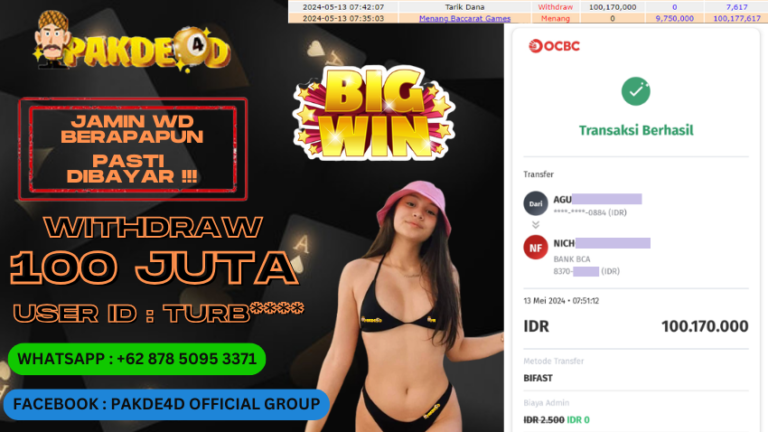 PAKDE4D JACKPOT DI PERMAINAN LIVE CASINO BACCARAT RP. 100.170.000,- LUNAS