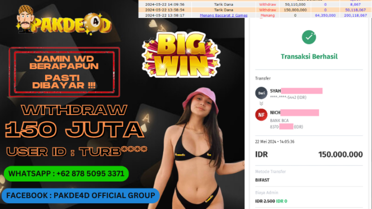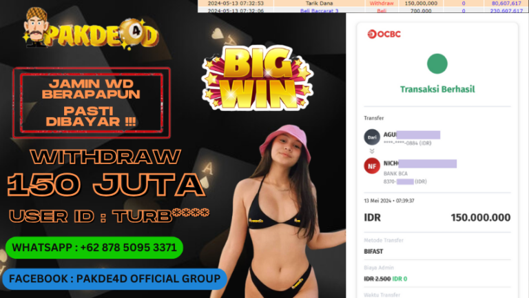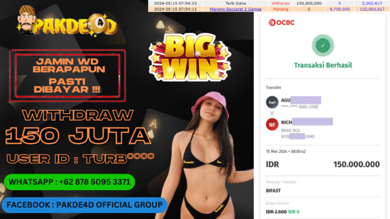 PAKDE4D JACKPOT DI PERMAINAN LIVE CASINO BACCARAT RP. 150.000.000,- LUNAS