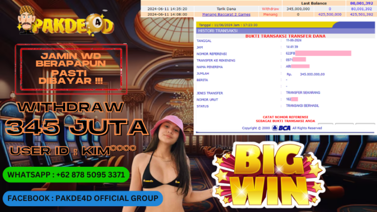 PAKDE4D JACKPOT DI PERMAINAN LIVE CASINO BACCARAT RP. 345.000.000,- LUNAS