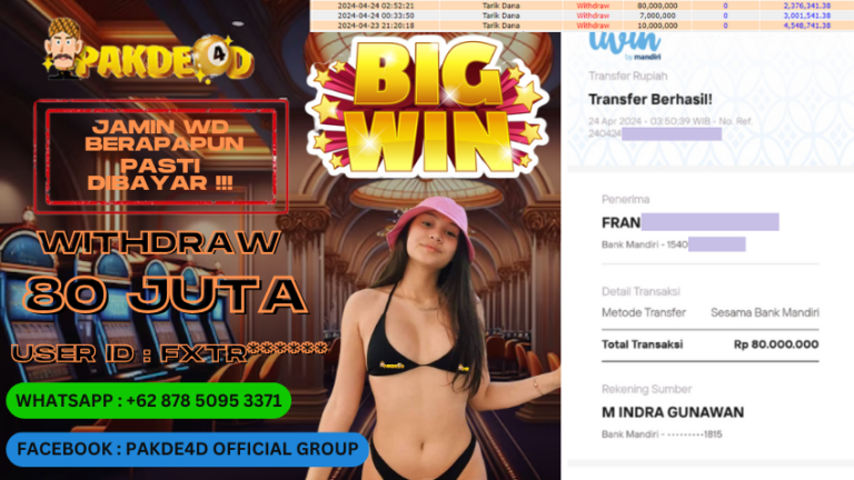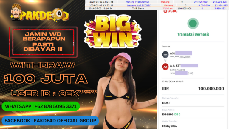 PAKDE4D – Situs Bandar Togel Online, Live Casino dan Slot Online Terpercaya yang terbukti membayar berapapun kemenangan Anda. Jika Anda masih mencari Situs Bandar Terpercaya, jangan ragu untuk bergabung bersama PAKDE4D. Dalam 1 akun Anda bisa menikmati semua permainan yang disediakan dengan minimal deposit hanya Rp. 10.000,- melalui transaksi Bank Lokal Indonesia dan Dompet Digital…