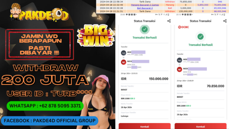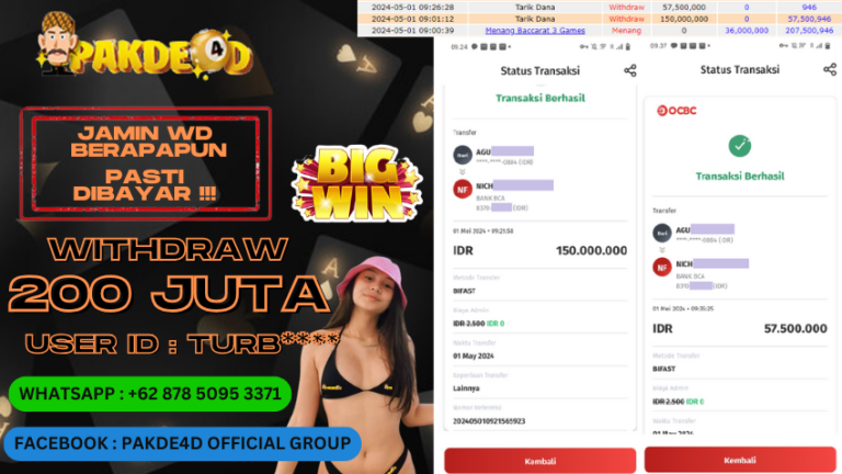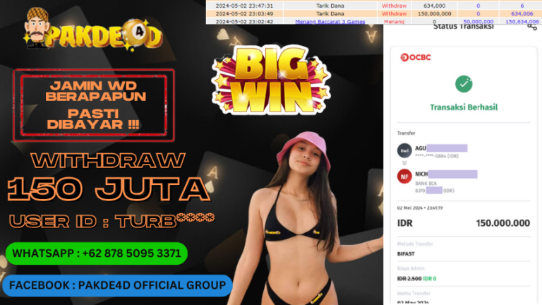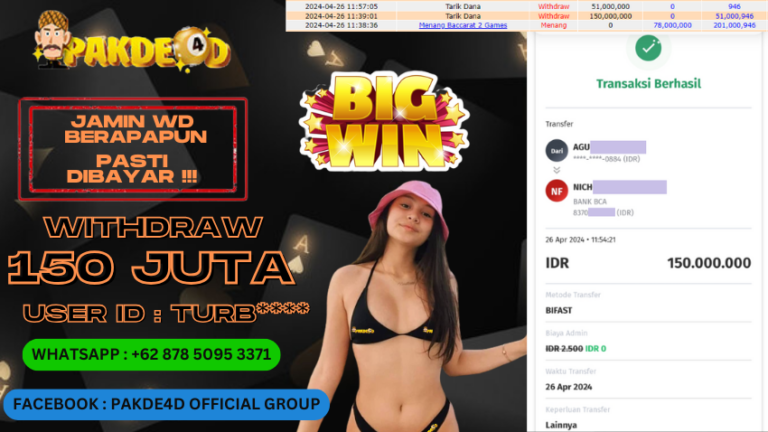 PAKDE4D JACKPOT DI PERMAINAN LIVE CASINO BACCARAT RP. 150.000.000,- LUNAS