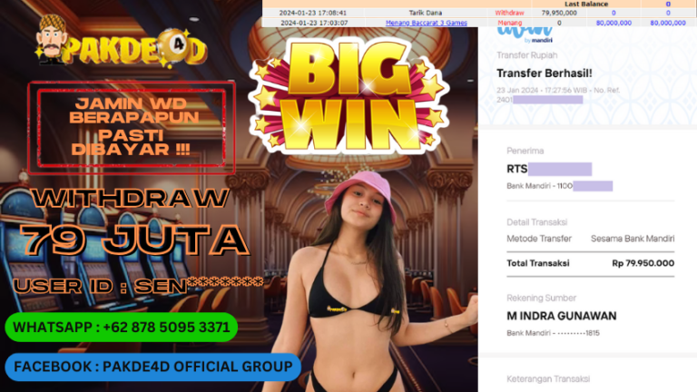 PAKDE4D JACKPOT DI PERMAINAN LIVE CASINO BACCARAT RP. 79.950.000 LUNAS