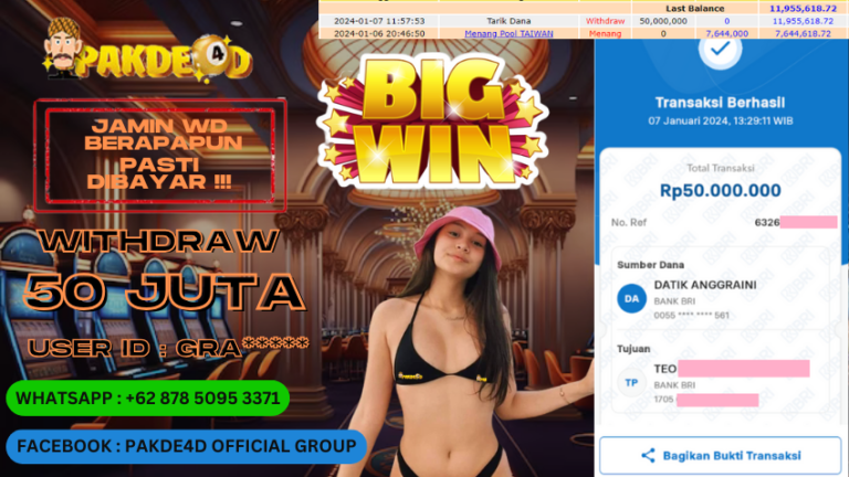 PAKDE4D JACKPOT DI PERMAINAN TOGEL PASARAN TAIWAN POOLS DAN SLOT RP. 50.000.000 LUNAS