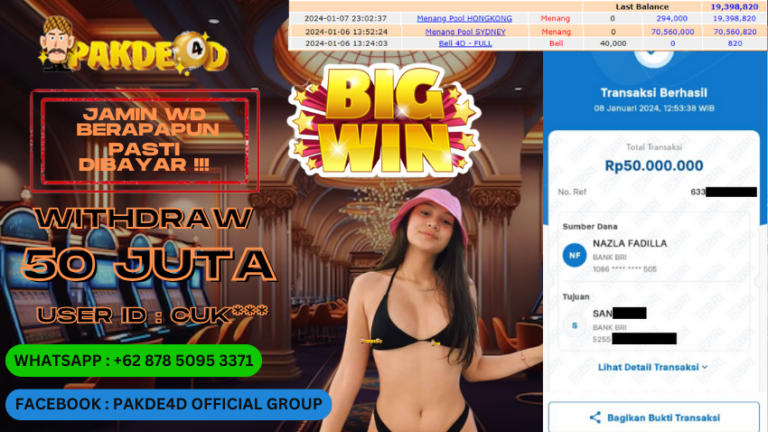 PAKDE4D JACKPOT DI PERMAINAN TOGEL PASARAN HONGKONG POOLS RP. 50.000.000 LUNAS