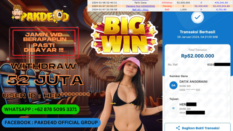 PAKDE4D JACKPOT DI PERMAINAN TOGEL PASARAN HONGKONG POOLS RP. 52.000.000 LUNAS