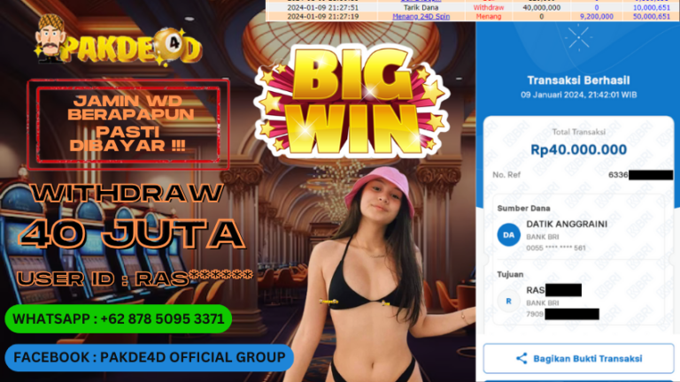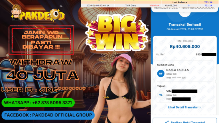 PAKDE4D JACKPOT DI PERMAINAN SLOT RP. 40.609.000 LUNAS