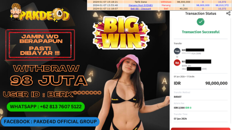 PAKDE4D – Situs Bandar Togel Online, Live Casino dan Slot Online Terpercaya yang terbukti membayar berapapun kemenangan Anda. Jika Anda masih mencari Situs Bandar Terpercaya, jangan ragu untuk bergabung bersama PAKDE4D. Dalam 1 akun Anda bisa menikmati semua permainan yang disediakan dengan minimal deposit hanya Rp. 10.000,- melalui transaksi Bank Lokal Indonesia dan Dompet Digital…