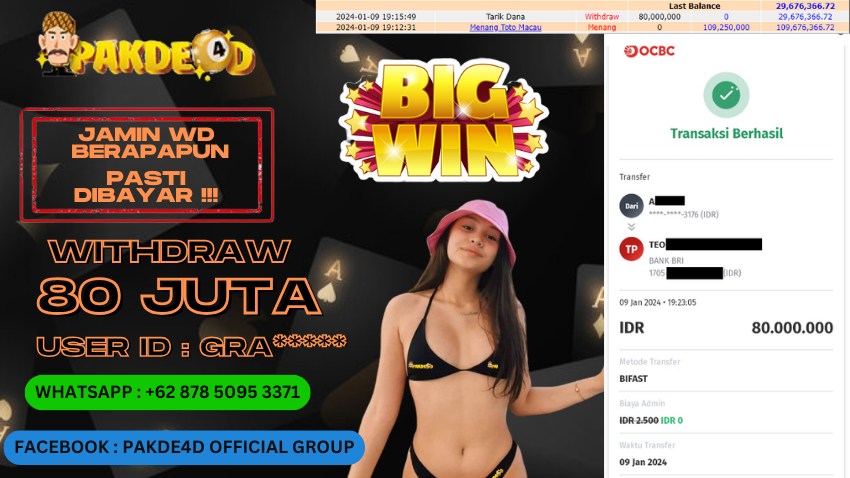 PAKDE4D JACKPOT DI PERMAINAN LIVE GAME TOTO MACAU 4D JP RP. 80.000.000 DI BAYAR LUNAS