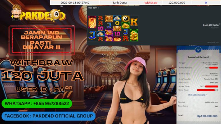 PAKDE4D JACKPOT DI PERMAINAN SLOT RP. 120.000.000 LUNAS