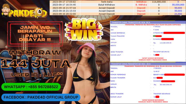 PAKDE4D JACKPOT DI PERMAINAN SLOT RP. 144.000.000 LUNAS