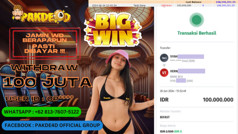 PAKDE4D JACKPOT DI PERMAINAN SLOT RP. 100.000.000,- LUNAS