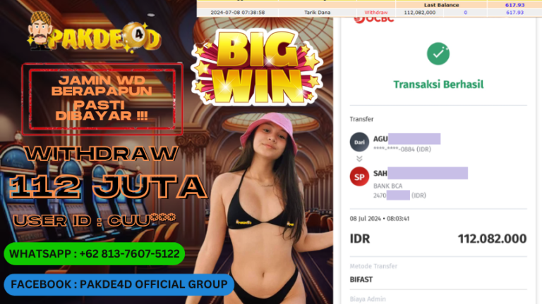 PAKDE4D JACKPOT DI PERMAINAN SLOT RP. 112.082.000,- LUNAS