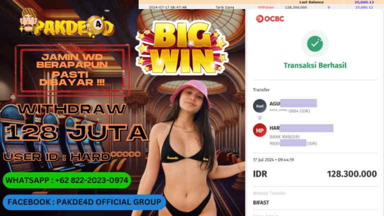 PAKDE4D JACKPOT DI PERMAINAN SLOT RP. 128.300.000,- LUNAS