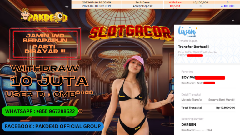 PAKDE4D JACKPOT DI PERMAINAN SLOT RP. 10.000.000 LUNAS