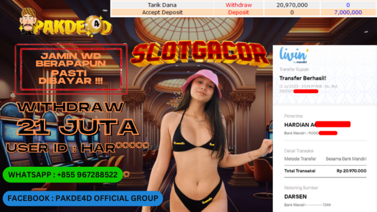 PAKDE4D JACKPOT DI PERMAINAN SLOT RP. 21.000.000 LUNAS