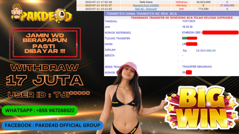 PAKDE4D – Situs Bandar Togel Online, Live Casino dan Slot Online Terpercaya yang terbukti membayar berapapun kemenangan Anda. Jika Anda masih mencari Situs Bandar Terpercaya, jangan ragu untuk bergabung bersama PAKDE4D. Dalam 1 akun Anda bisa menikmati semua permainan yang disediakan dengan minimal deposit hanya Rp. 10.000,- melalui transaksi Bank Lokal Indonesia dan Dompet Digital…