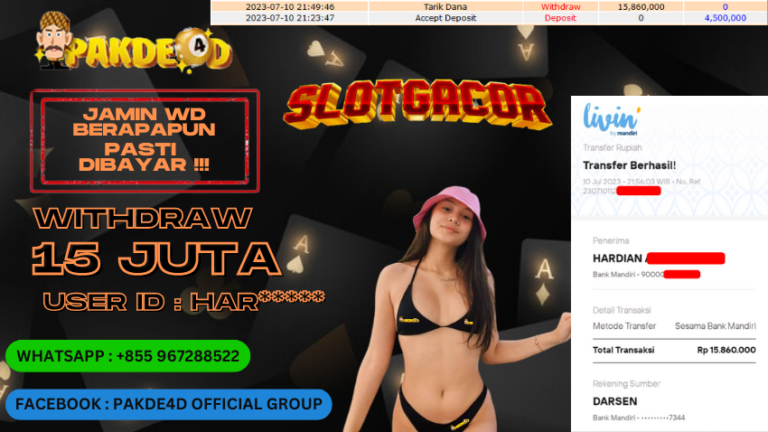 PAKDE4D JACKPOT DI PERMAINAN SLOT RP. 15.000.000 LUNAS