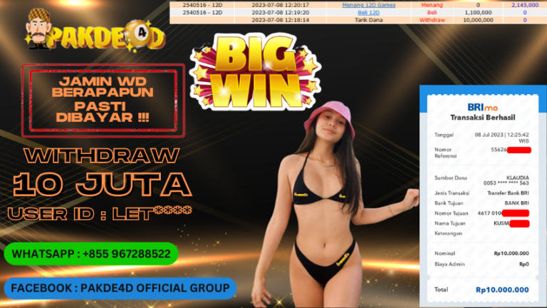 PAKDE4D JACKPOT DI PERMAINAN SLOT RP. 10.000.000 LUNAS