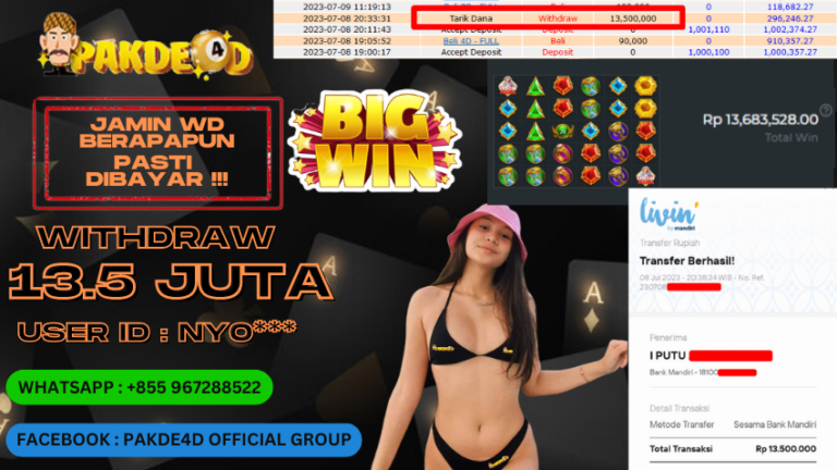 PAKDE4D JACKPOT DI PERMAINAN SLOT RP. 13.500.000 LUNAS