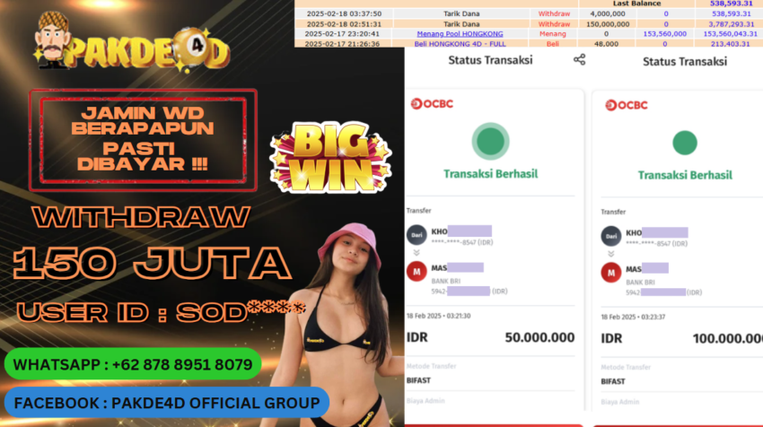 PAKDE4D JACKPOT DI PERMAINAN HONGKONG RP. 153.560.000,- LUNAS