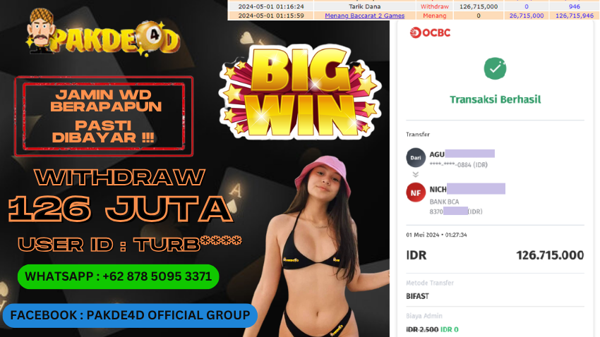 PAKDE4D JACKPOT DI PERMAINAN LIVE CASINO BACCARAT RP. 126.715.000,- LUNAS