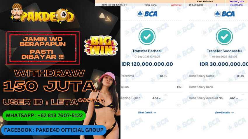 • PAKDE4D JACKPOT DI PERMAINAN PP LIVE BACCARAT A RP. 150.000.000,- LUNAS