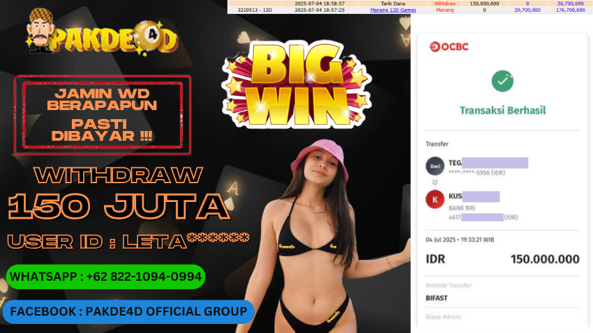 • PAKDE4D JACKPOT DI PERMAINAN PP LIVE BACCARAT A RP. 150.000.000,- LUNAS