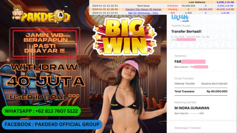 PAKDE4D JACKPOT DI PERMAINAN LIVE GAME TOTO MACAU 5D JP RP. 40.000.000 DI BAYAR LUNAS