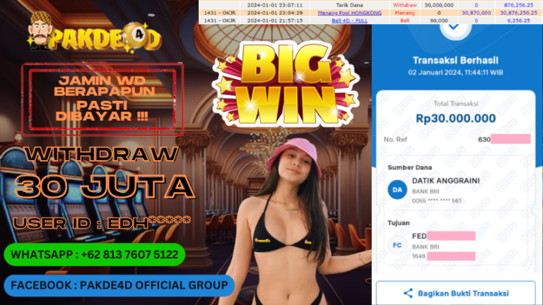 PAKDE4D JACKPOT DI PERMAINAN TOGEL RP. 30.000.000 LUNAS