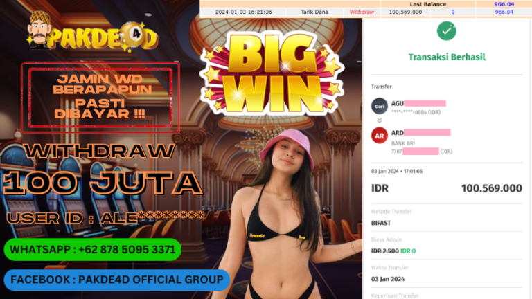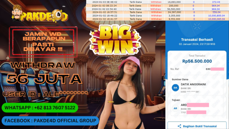 PAKDE4D JACKPOT DI PERMAINAN SLOT RP. 56.500.000 LUNAS