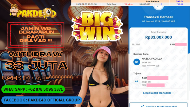 PAKDE4D JACKPOT DI PERMAINAN SLOT RP. 33.007.000 LUNAS