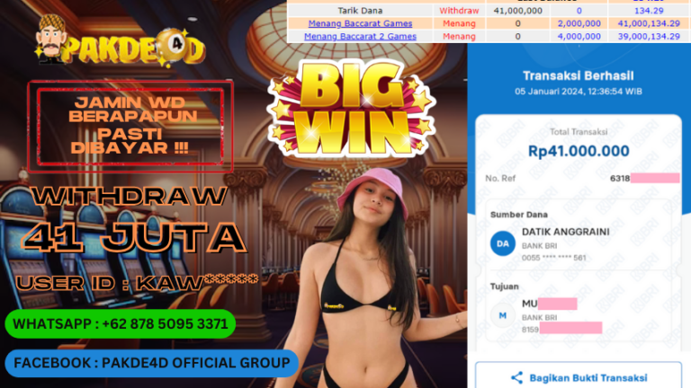 PAKDE4D JACKPOT DI PERMAINAN LIVE CASINO BACCARAT RP. 41.000.000 LUNAS